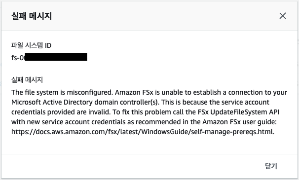 AWS FSx์ ์๋ช ์ฃผ๊ธฐ ์ํ๊ฐ “์๋ชป ๊ตฌ์ฑ๋จ”์ผ๋ก ์ถ๋ ฅ๋จ