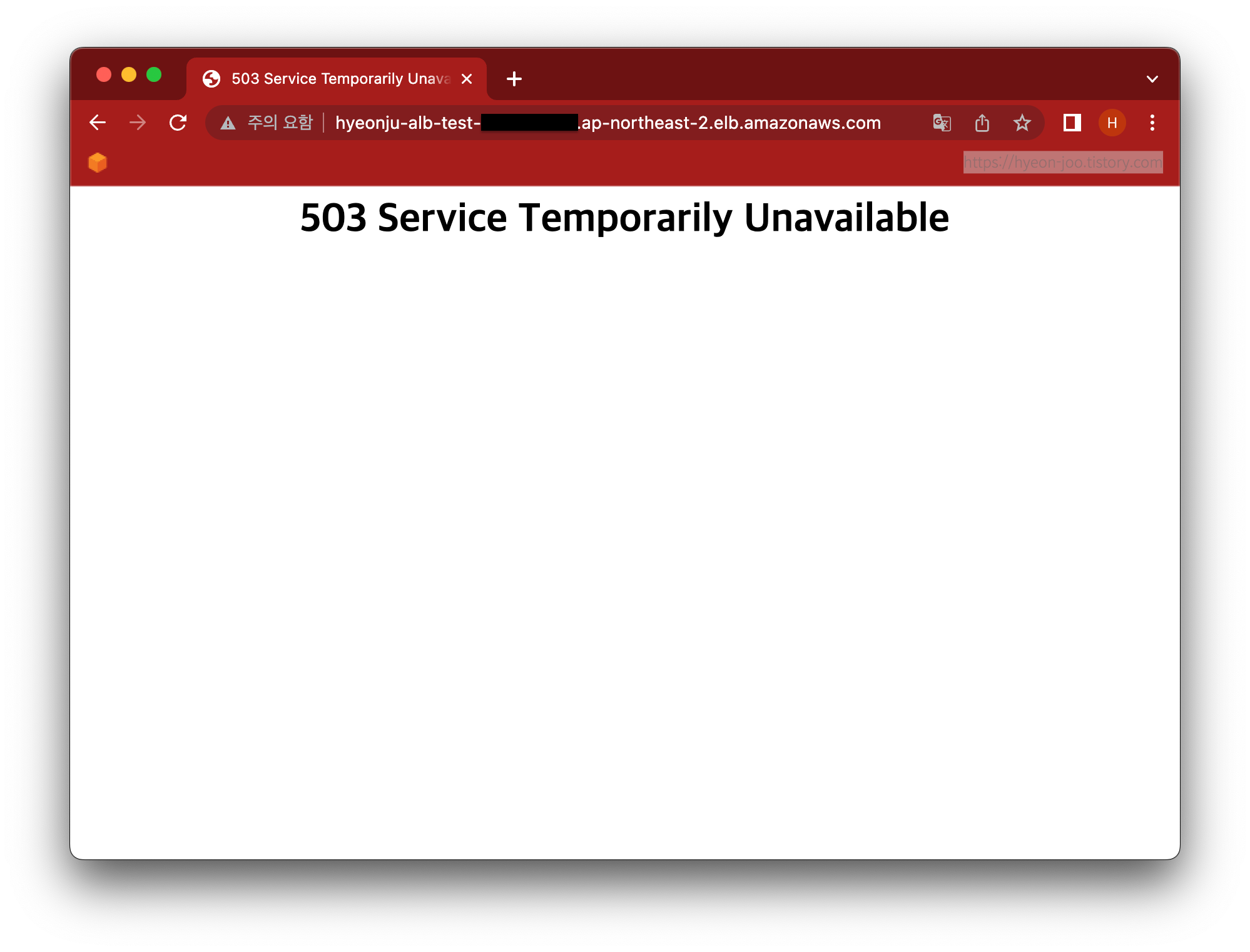 ์ด๋, ์ฌ์ฉ์๊ฐ ALB์ ์๋ํฌ์ธํธ๋ฅผ ์ ์ํ๋ ๊ฒฝ์ฐ ์์ ๊ฐ์ด 503 ์๋ฌ๋ฅผ return ๋ฐ๋๋ค.