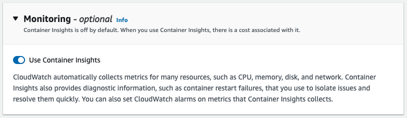 Monitoring > Container Insight ํ์ฑํ(์ ํ)