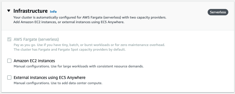 - App Environment : AWS Fargate (serverless) ์ ํ