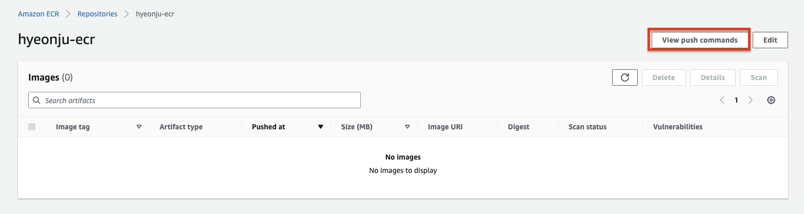 docker push { account-number.dkr.ecr.ap-northeast-2.amazonaws.com/hyeonju-ecr:latest }
