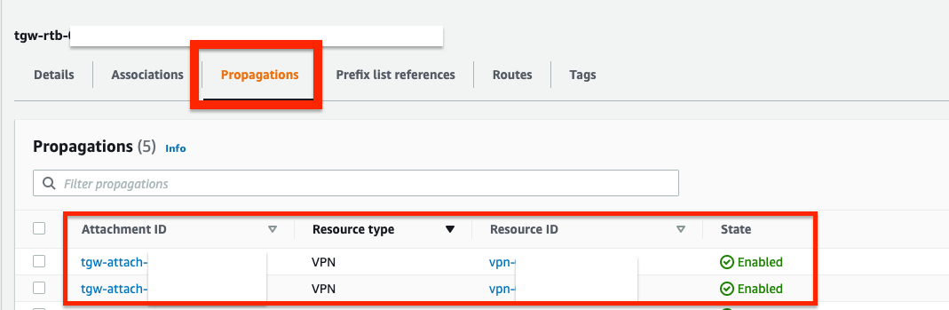propagation์ ์์ฑํ๋ฉด ํด๋น CIDR ๋์ญ์ ๋ํด propagted type์ผ๋ก ๊ฒฝ๋ก๊ฐ ํ๋ ์์ฑ๋๋ค.